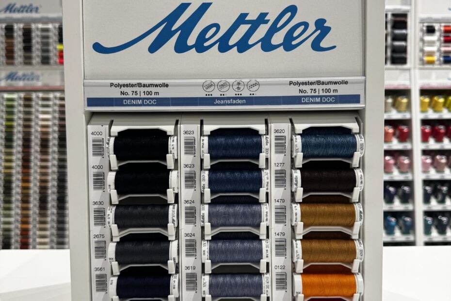 Pre order nu het nieuwste garenkastje van Amann Mettler met kwaliteits doorstikgaren Denim Doc met 14 kleuren (90 klossen)